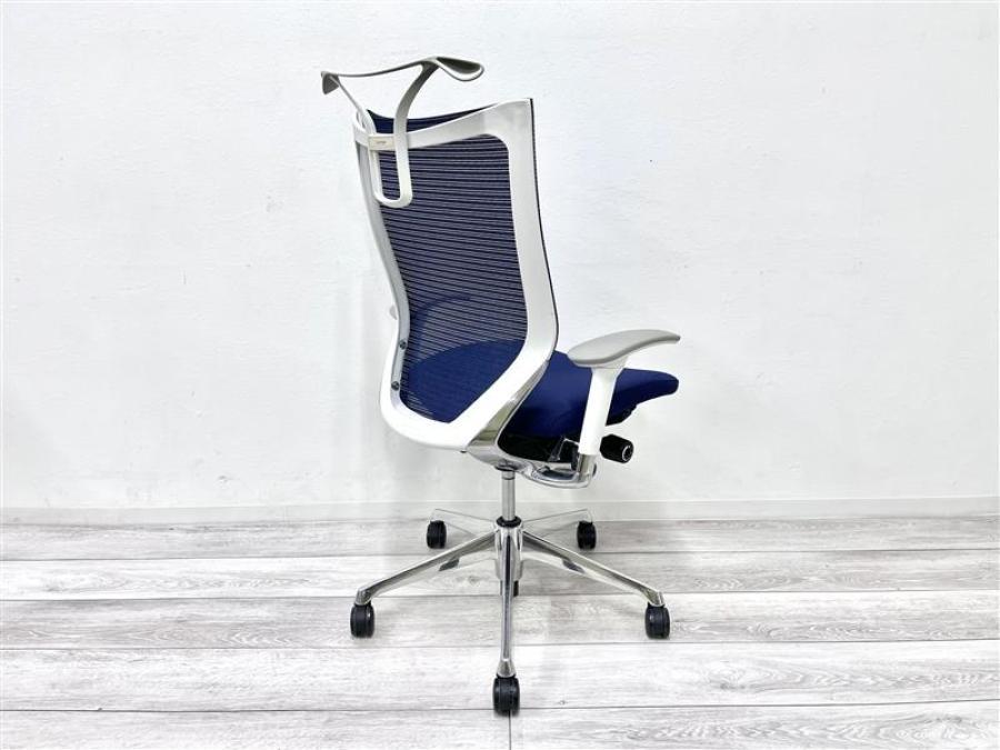 【オフィスの執務室、会議室におすすめ!】■オカムラ(okamura)製 バロン(Baron)チェア 肘付き ハイバック 背面メッシュ ■可動肘 ■ダークブルー × ホワイトシェル【硬めの座面が大人気!国産メッシュチェアの代表格!】