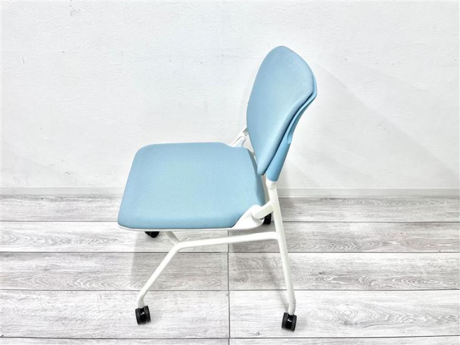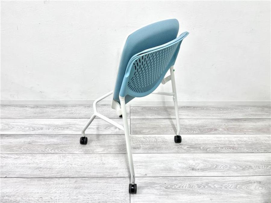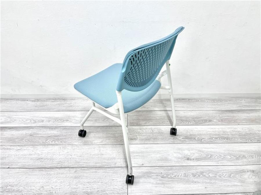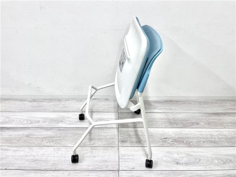 【定価約5万円】【シンプルで明るいカラーのネスティングチェア!】■オカムラ/ルナチェア ■ライトブルー ネスティングチェア ※残り1点在庫がある店舗一覧