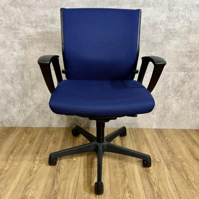 【関西倉庫在庫】■オカムラ(okamura)製 エスクードチェア 肘付ローバックチェア ■ダークブルー×グレーシェル ■デザインアーム ■ランバーサポート 【弊社使用欄:A01029268】