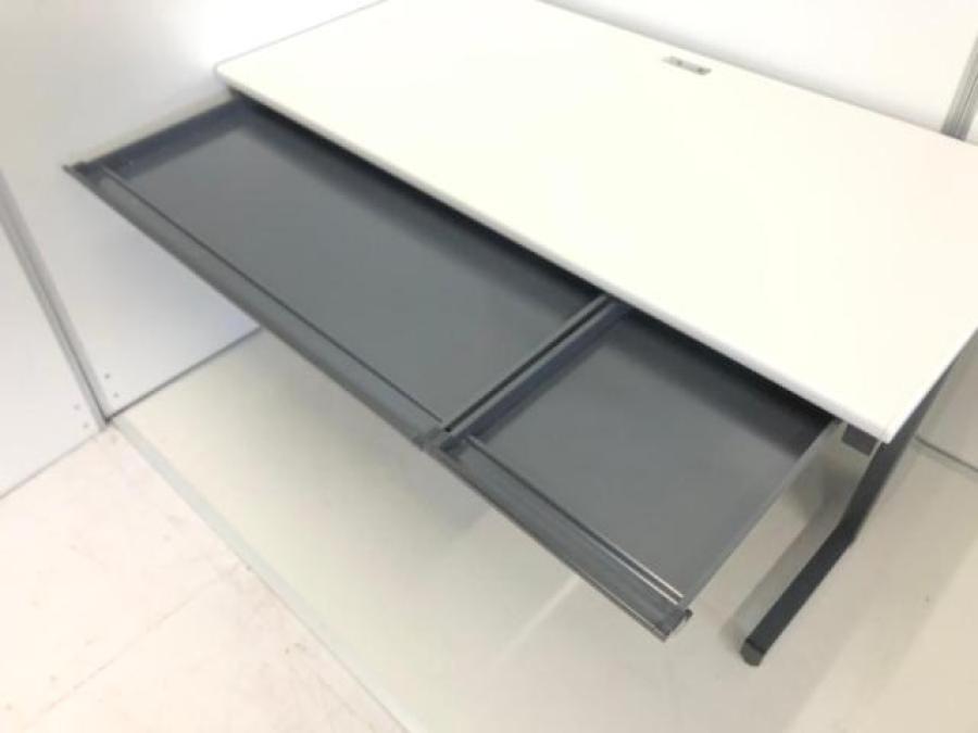 【T9】【商品入替のため、残り1台限り】プラス製 フラットラインシリーズ ホワイト 珍しいブラックフレーム ホワイト天板とブラック脚のコントラストがオシャレ! 広々使えるW1400サイズ W1400平机!!