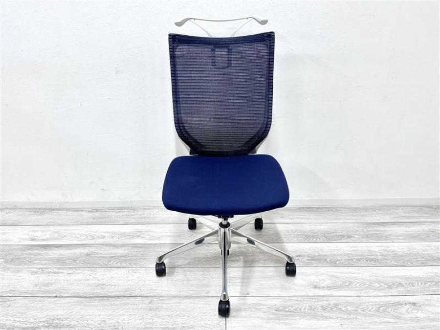 【在庫入替セール品】希少/オススメ/大人気 オカムラ製 バロンチェア(Baron) ハイバック 肘無し ■背/座面メッシュ ■ミディアムブルー