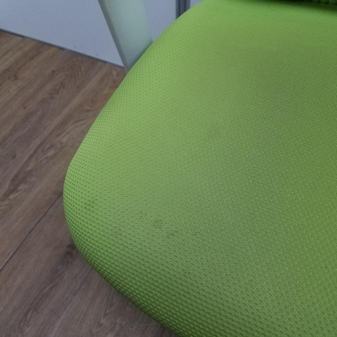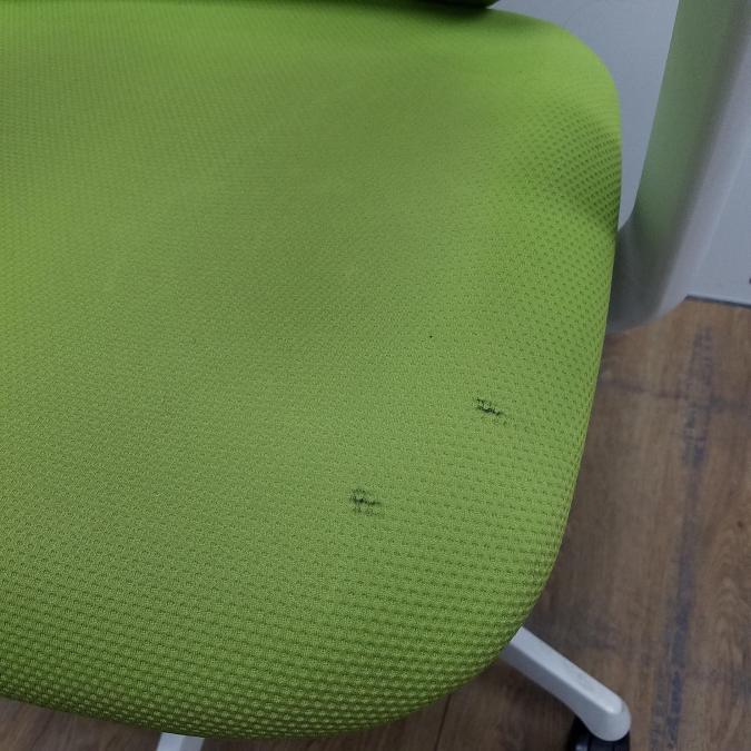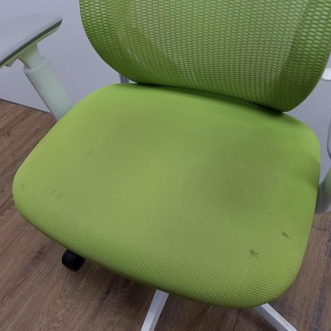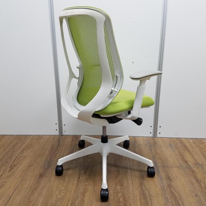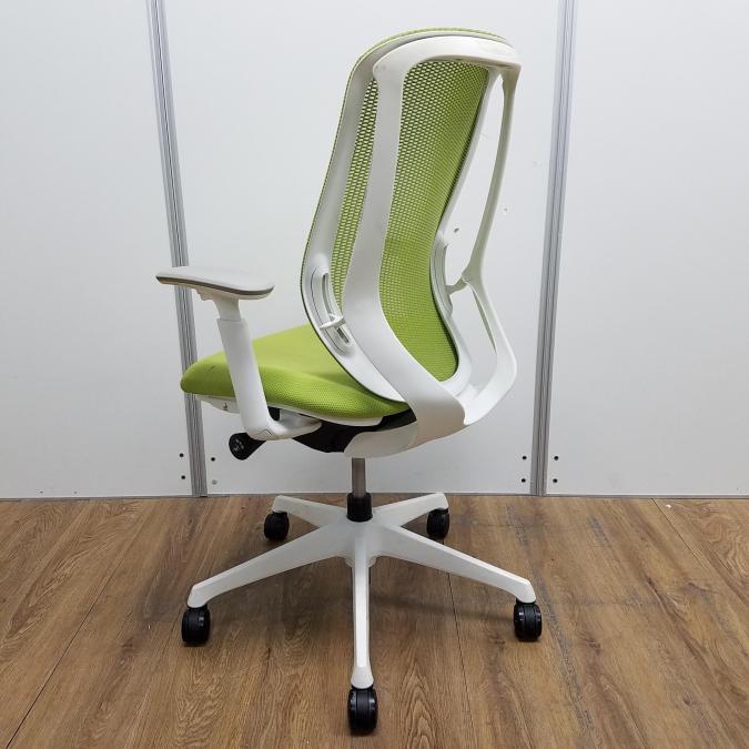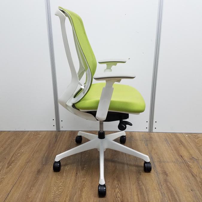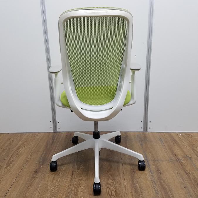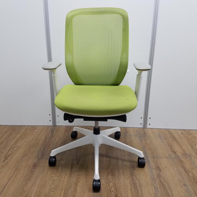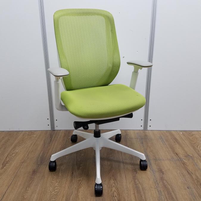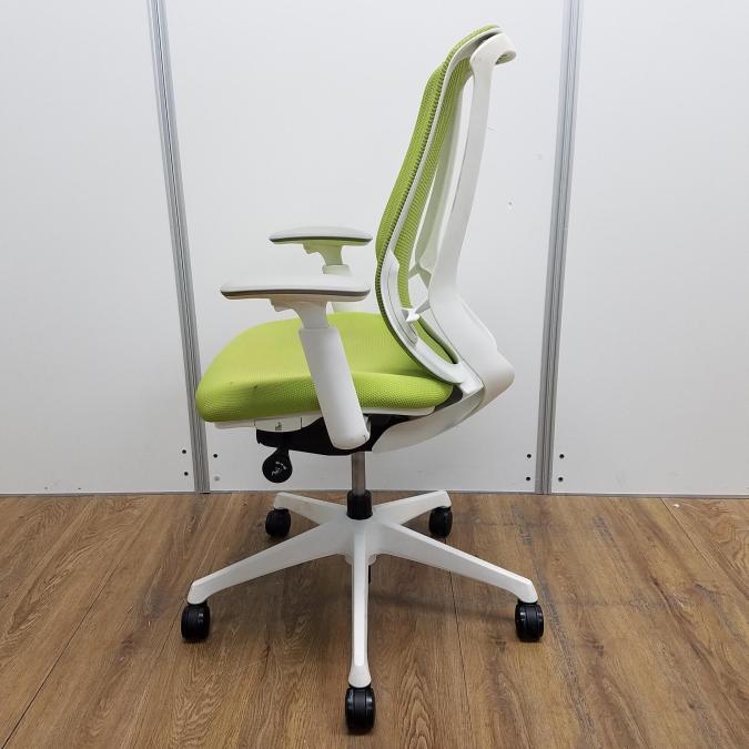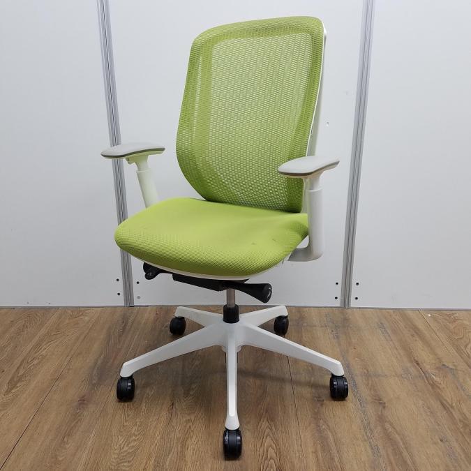 【商品入替のため、残り1脚限り】【座面に目立つ汚れあり】オカムラ製 シルフィーシリーズ ライムグリーン ホワイトフレーム 樹脂脚 アジャストアーム※可動肘 前傾チルト機能付!爽やかグリーンカラー!大人気高機能メッシュチェア!役員用・ご自宅用にもオススメ! 肘付きハイバックチェア!!- 京都東寺店