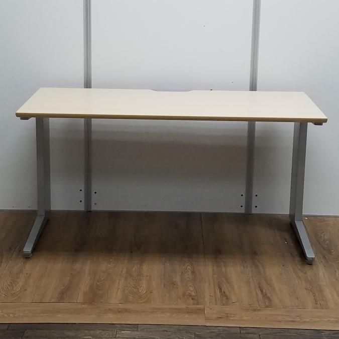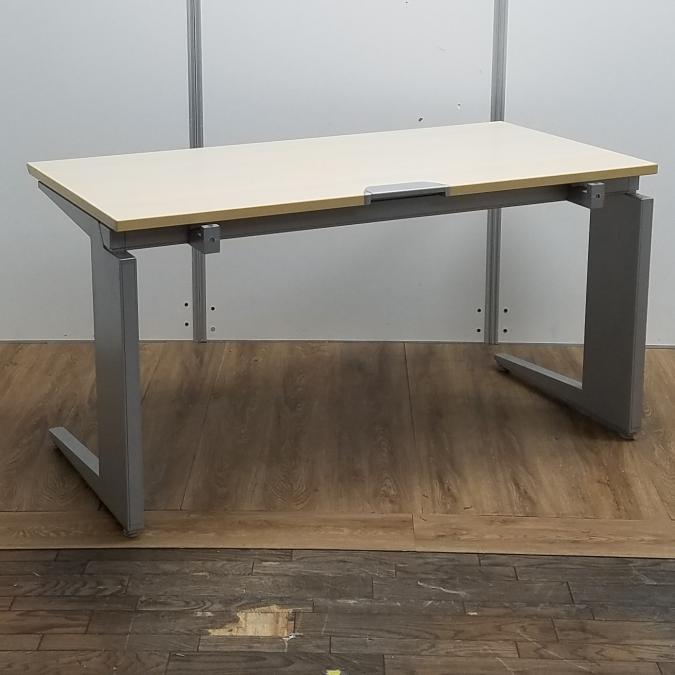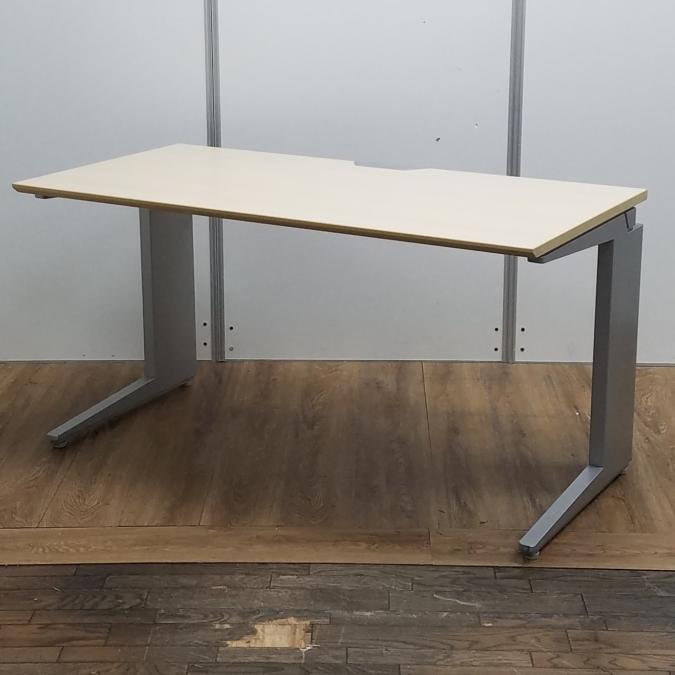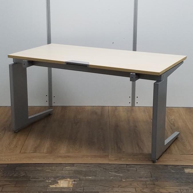 【商品入替のため、残り3台限り】オカムラ製 プロユニットシリーズ 木目ナチュラル天板×シルバー脚 希少品!上長席や役員席にもおすすめ 注意※奥行735サイズ W1400平机!!- 京都東寺店