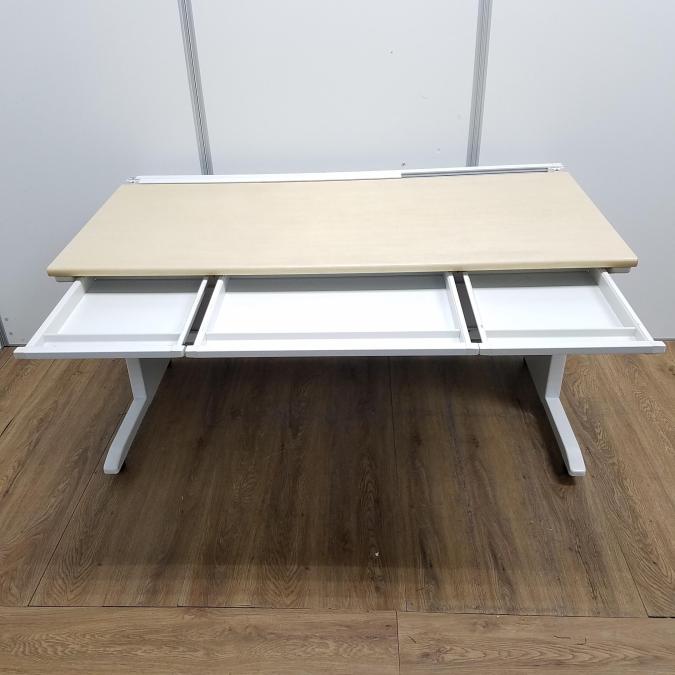 【在庫入替セール】イトーキ CXデスク 天板ナチュラル 脚ホワイト 引き出し付き ※日焼けあり・配線カバーや樹脂パーツが一部不足しています
