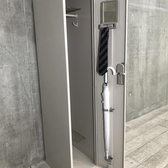 - 完備鏡、ネクタイ掛け、傘立て、網棚、フック等が全て完備されている。