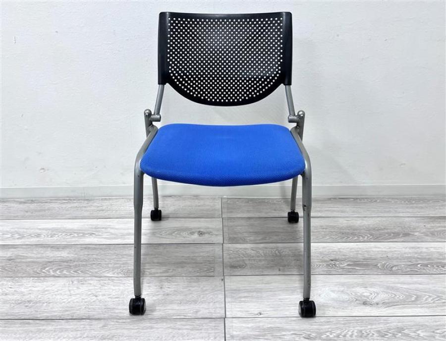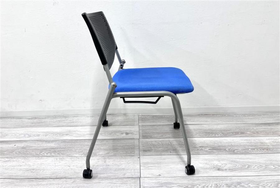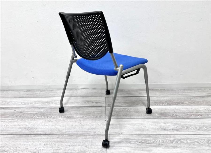 【外部倉庫在庫品!】【ミーティングルームやリフレッシュルーム用としてオススメ!】■オカムラ(okamura)製 プロスタック ネスティングチェア スタッキングチェア プレーンタイプ ■座面ブルー/背面樹脂メッシュ:ブラック ■キャスター付 ■メッシュ【BR】サーキュラーバリューCO2削減量の算出について
