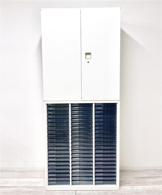 【定価約19万円】【書類の収納、仕分けに便利な下段クリスタルトレイの両開き書庫セット!】■オカムラ/レクトライン■上段両開き+下段クリスタルトレイ(浅のみ)■- 仙台店