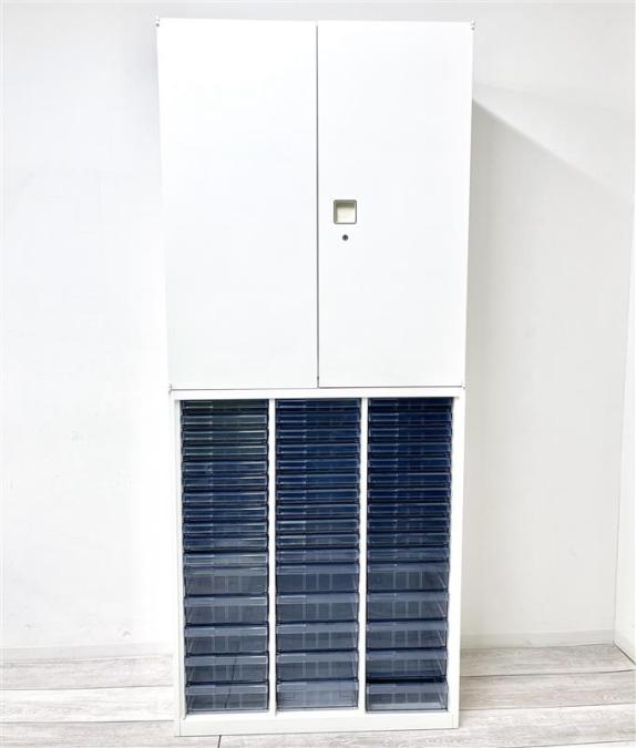 【在庫入替セール品】【定価約19万円】【書類の収納、仕分けに便利な下段クリスタルトレイの両開き書庫セット!】■オカムラ/レクトライン■上段両開き+下段クリスタルトレイ(深浅混在)- 仙台店