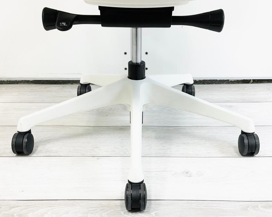 - 椅子と背が連動する「シンクロリクライニング」。リクライニング角度は直立ポジションから前方に10度、後方に23度です。