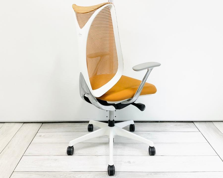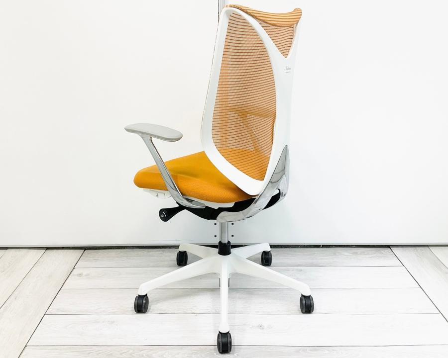 【在庫入替セール品】【前傾機能で作業効率アップ!安定感のある座り心地で人気の大好評サブリナチェア!】【ご自宅用にもオススメ!】 ■オカムラ(okamura)製 Sabrina(サブリナ) ハイバック 肘付き ■背面メッシュ ■固定肘 ■オレンジ×ブラックフレーム 【弊社使用欄:A01013661】