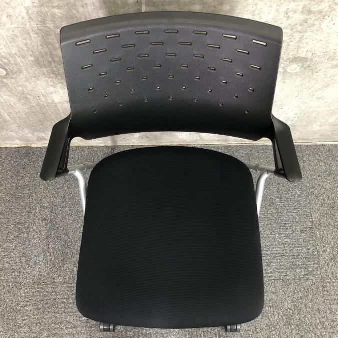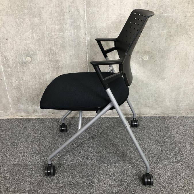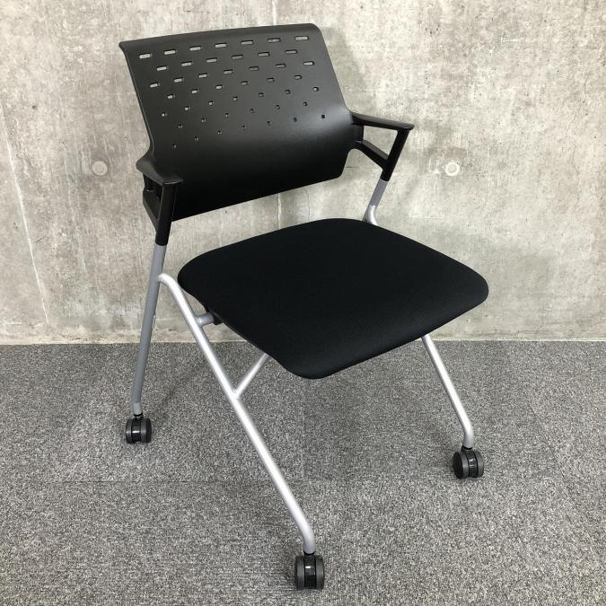 【ミーティングスペースの必需品!背もたれには通気口あり!背中の蒸れ防ぎます!】■コクヨ製 ピエガ ネスティングチェア 背面樹脂メッシュ ■ブラック ■キャスター付- 大阪・堺店