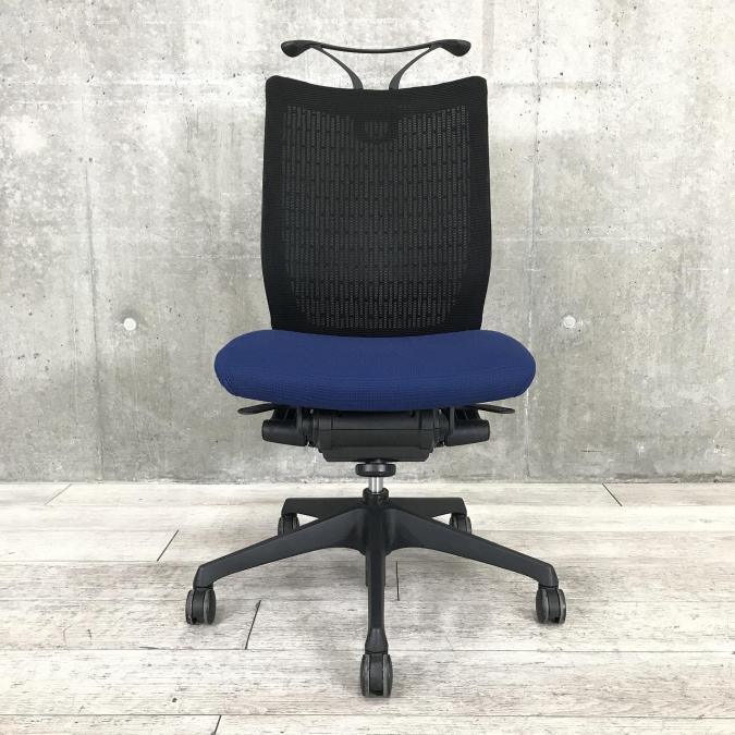 【高いデザイン性と人間工学に基づいた心地よい座り心地!】■オカムラ(okamura) ヴィスコンテチェア ハイバック肘無し 背面メッシュ ■背面ブラック×座面ネイビー ■コートハンガー付きサーキュラーバリューCO2削減量の算出について
