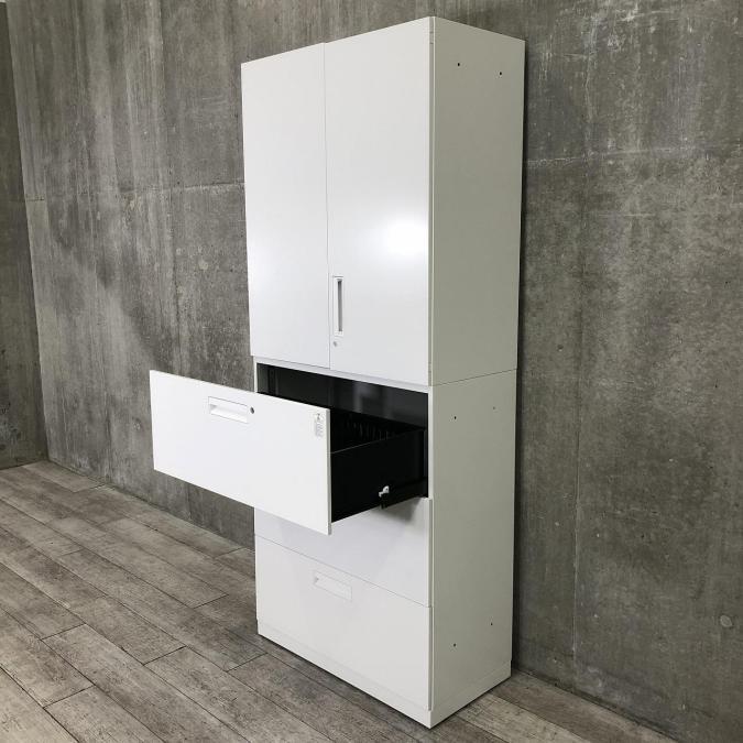 【収納量抜群の書庫セット!観音開き+引き出しタイプの人気の組み合わせ!】■コクヨ(KOKUYO)製 エディア(EDIA)シリーズ 両開き+3段ラテラル 書庫セット ハイキャビネット H2160㎜ ■ホワイト ■シリンダー錠
