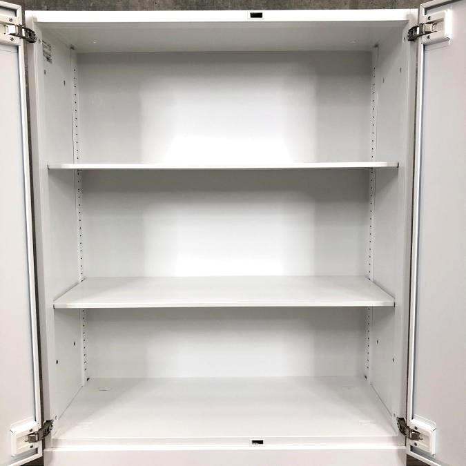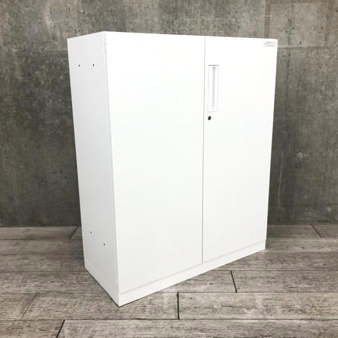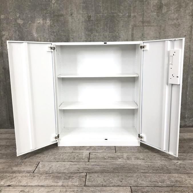 【在庫入替セール】【1台限定】【シャープでスリムなデザイン!棚板は上下に調整が可能!】■コクヨ製 エディア 両開きローキャビネット ■ホワイト ■シリンダー鍵- 神戸・三宮店