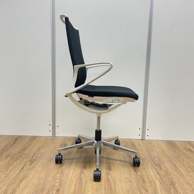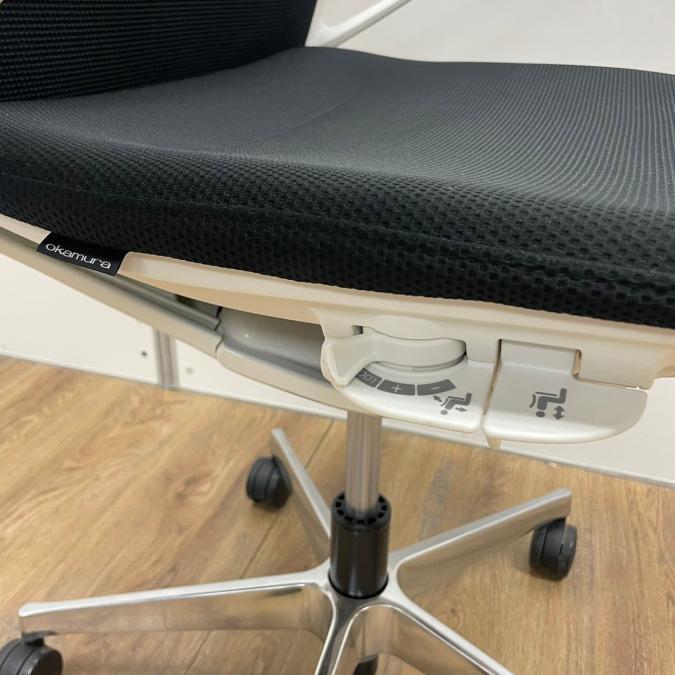 【在庫入替セール】オカムラ モード デザインアーム搭載 ミドルバック ブラック×アルミ脚 張地:クロス(プレーン) 高いデザイン性×シンプルかつ操作性のある機能