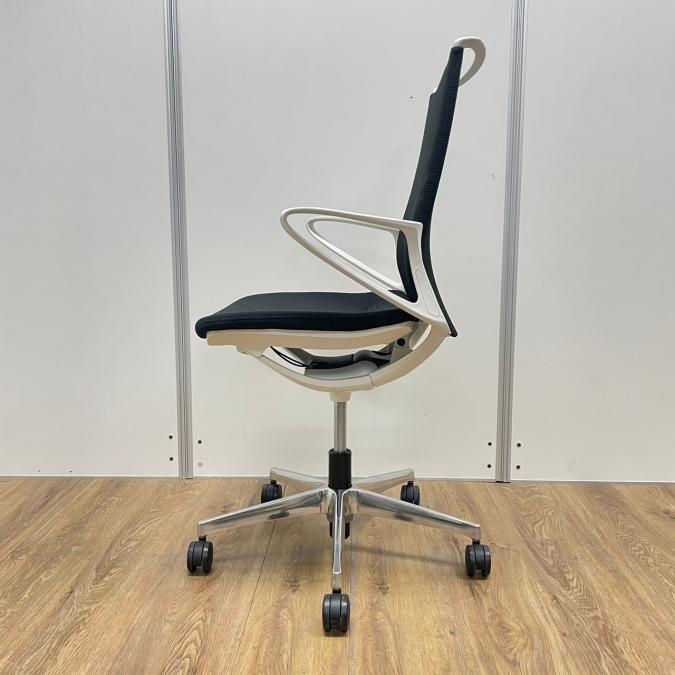 【残り2脚!おしゃれチェア入荷しました。】オカムラ製 モードシリーズ ブラックカラー ホワイトフレーム クロス仕様 固定肘 機能とデザインが融合~会議室やモダンなオフィスの執務用としてもオススメ 肘付きミドルバックチェア!!- 大阪・堺店