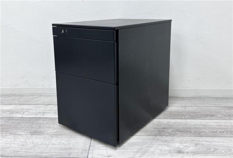 【フラットフェースでスタイリッシュなデザイン!】■オカムラ製 3段ワゴン プロユニットシリーズ ブラック ■収納力アップ!デスクサイドキャビネット!【Okamura ProUnit】