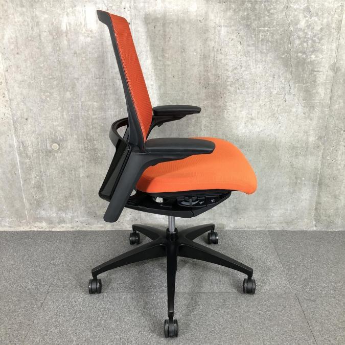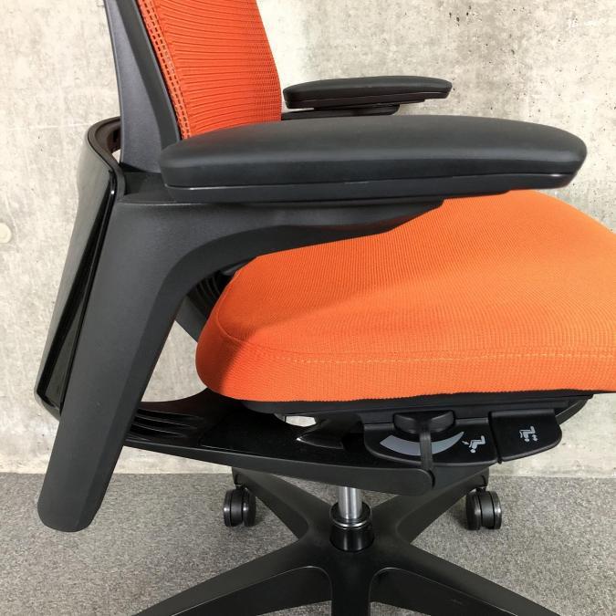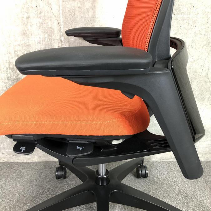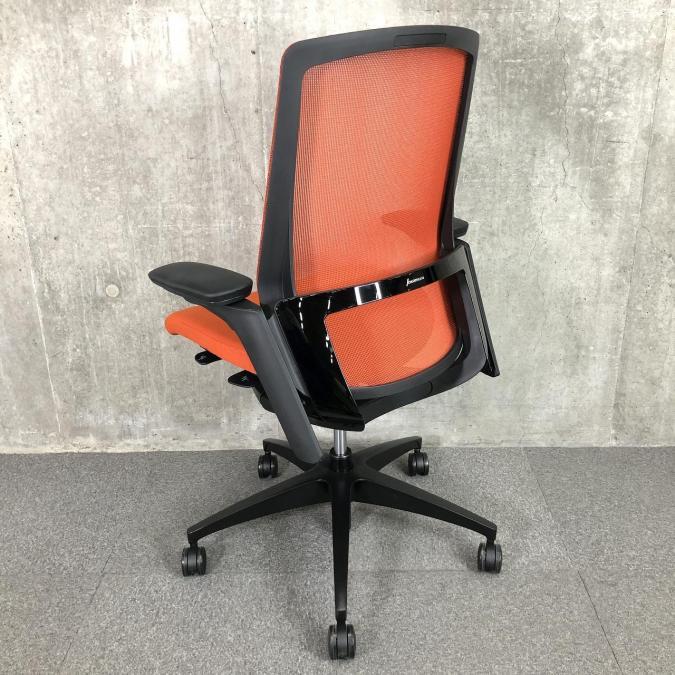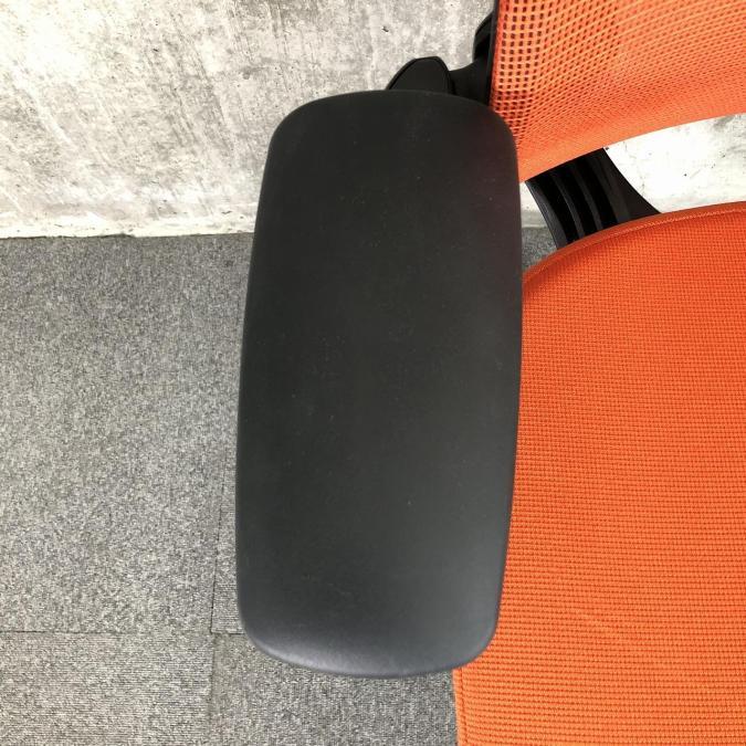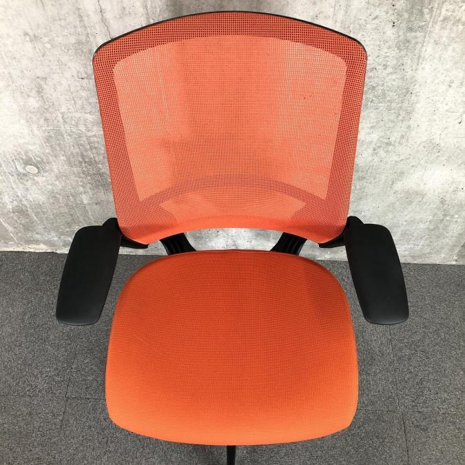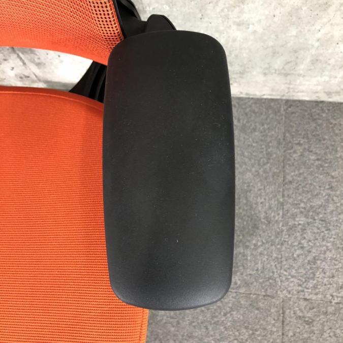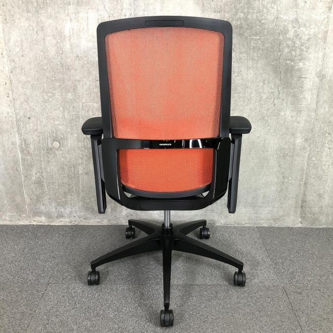 【在庫入替セール品】【オカムラの高級モデル!美しいデザインと透過性の高いメッシュ仕様でワンランク上の環境に!】■オカムラ(okamura) 製 フィノラ(Finora) 肘付ハイバック ■オレンジレッド×ブラックシェル ■背面メッシュ ■可動肘【弊社使用欄:A00992102】- 在庫数
