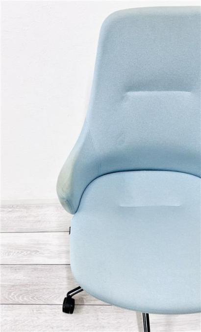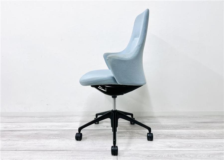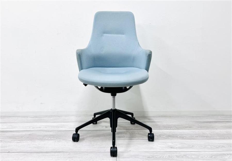 【在庫入替セール品】【定価約15万円】【カジュアルかつ柔らかなデザインのライブスチェア!】■オカムラ/ライブス ■肘付OAチェア ライトブルー- 在庫数