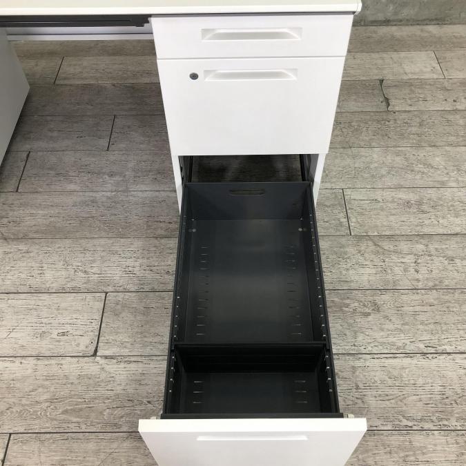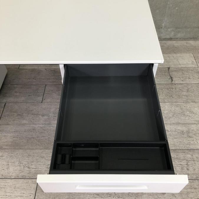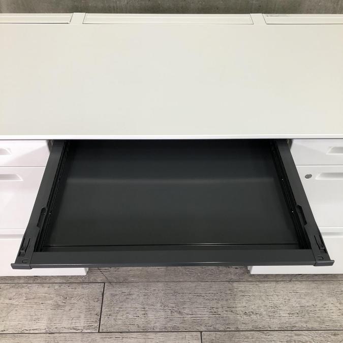 W1400mmの大きめサイズで両サイドに袖引き出しがあり、