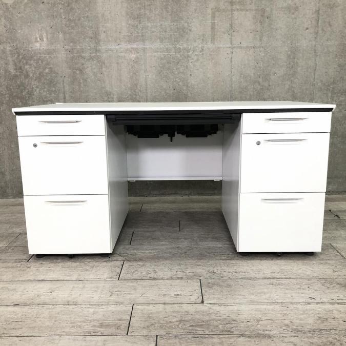 【在庫セール品・1台限定】【T11】■コクヨ(KOKUYO)製 アイエス(iS)シリーズ 両袖デスク W1400mm ■シリンダー錠 ■ホワイト【幅広いワークスペースで上長席にもオススメ! 収納スペース充実! 机上をスッキリ整理!】