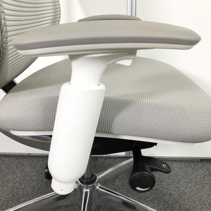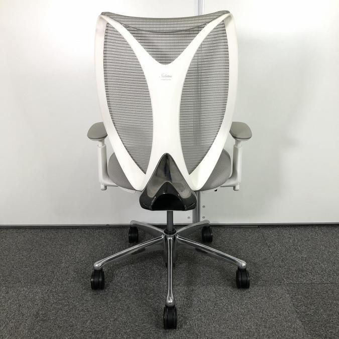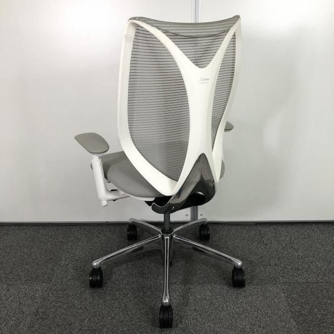 【前傾チルト付!流れるような美しいフォルムの最高級メッシュチェア!】■オカムラ(okamura)製 Sabrina(サブリナ)チェア 肘付ハイバック ■アジャストアーム(可動肘) ■背面メッシュ ■ライトグレー × ホワイトフレーム
