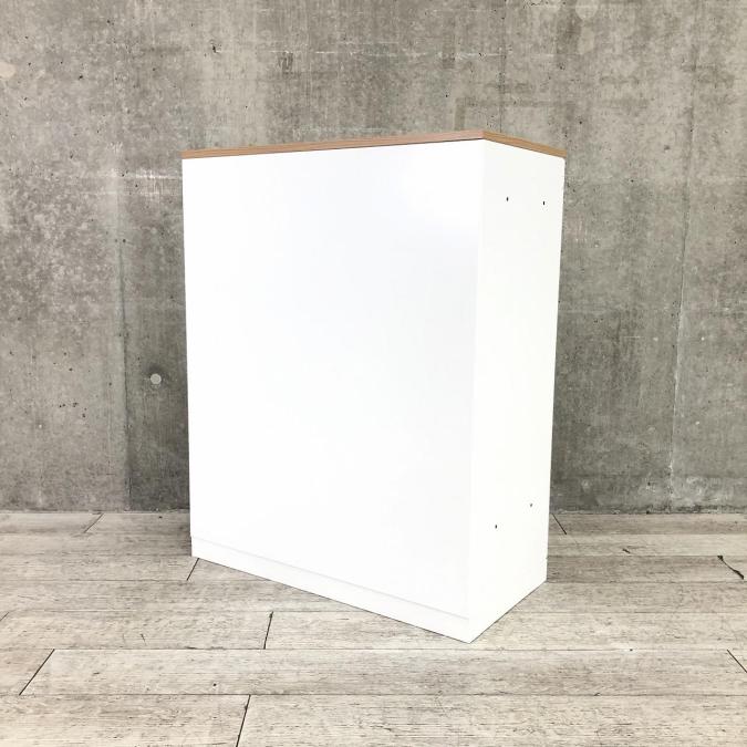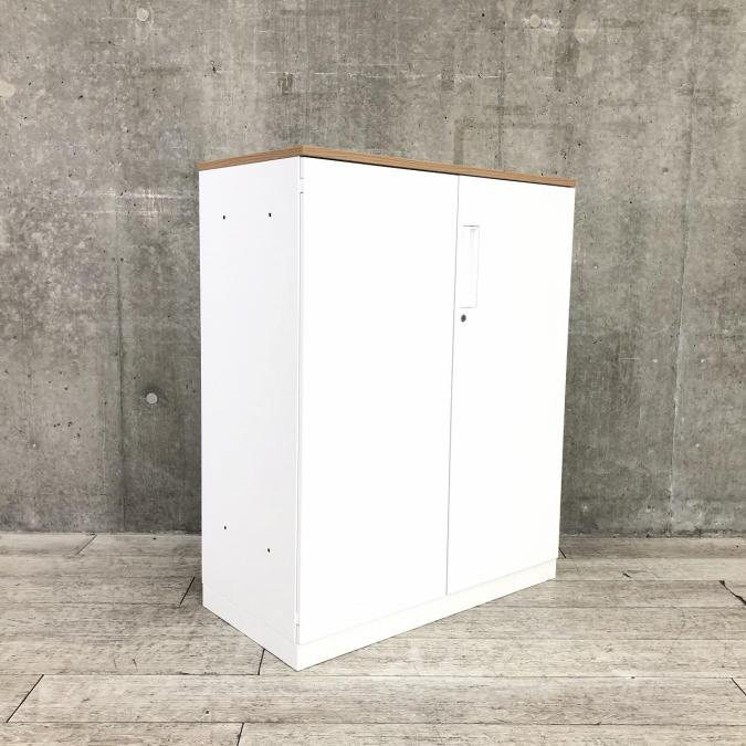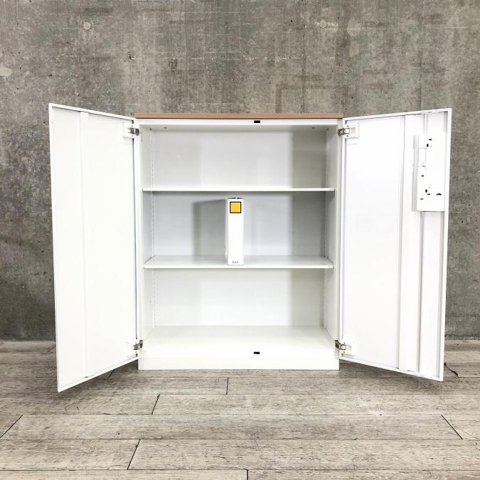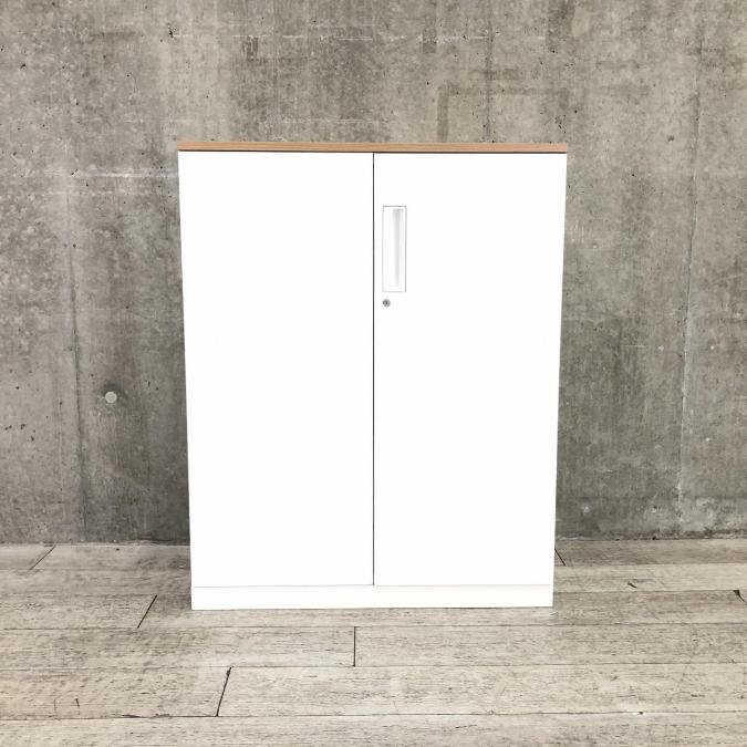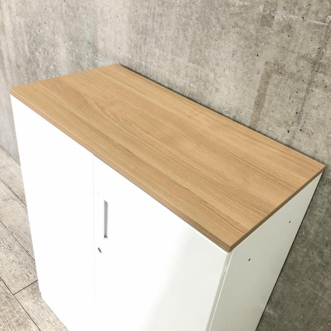 【収納量抜群!観音開きタイプのキャビネット!】■コクヨ(KOKUYO)製 エディアシリーズ(EDIA) 両開き書庫 ローキャビネット 下置き用 ■ナチュラル木目天板 ■ホワイト ■シリンダー錠 【弊社使用欄:A90100726】