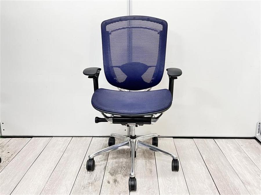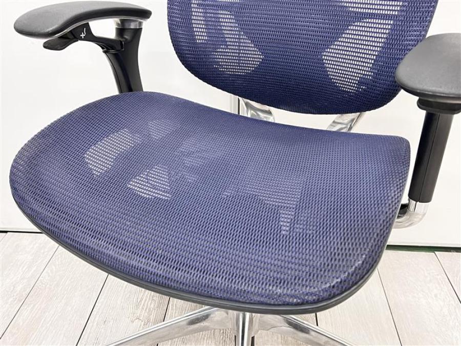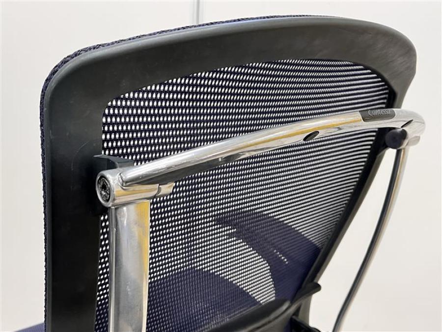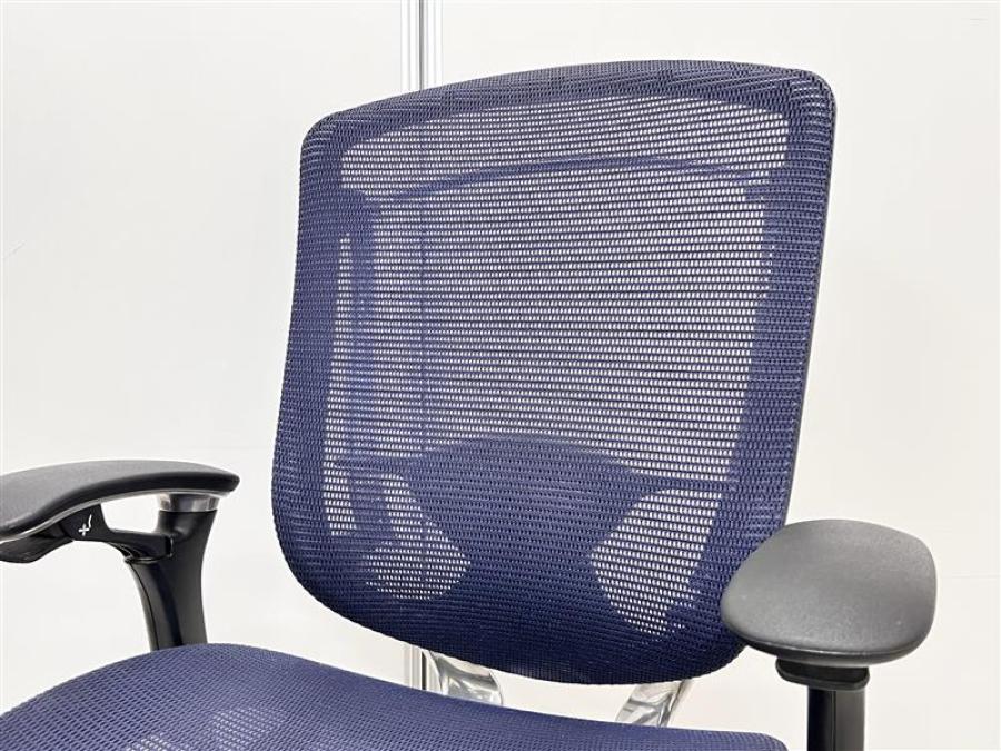 【オカムラ製の最高級チェアが残り1脚限りです!!】オフィスバスターズ 東大阪店 オカムラ製 コンテッサ シリーズ ダークブルー アジャストアーム※可動肘 背/座面メッシュ ランバー 世界で認められた革新的タスクチェア!人間工学に基づいた快適な座り心地を実現! 肘付きハイバックチェア!! 中古 外部倉庫品