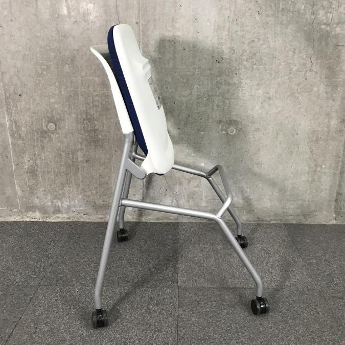 【在庫入替セール】オカムラ ルナ ネスティングチェア 背パッドなし ミディアムブルー×ホワイトフレーム 会議用・打ち合わせ用に最適のチェア 【愛知・名古屋・豊田・静岡・浜松】