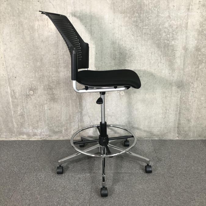 【熱がこもらない背もたれメッシュ構造!5本脚キャスター付で移動が楽々!】■プラス(plus)製 チェダーC 肘無カウンターチェア ■ブラック ■5本脚キャスター付- 神戸・三宮店