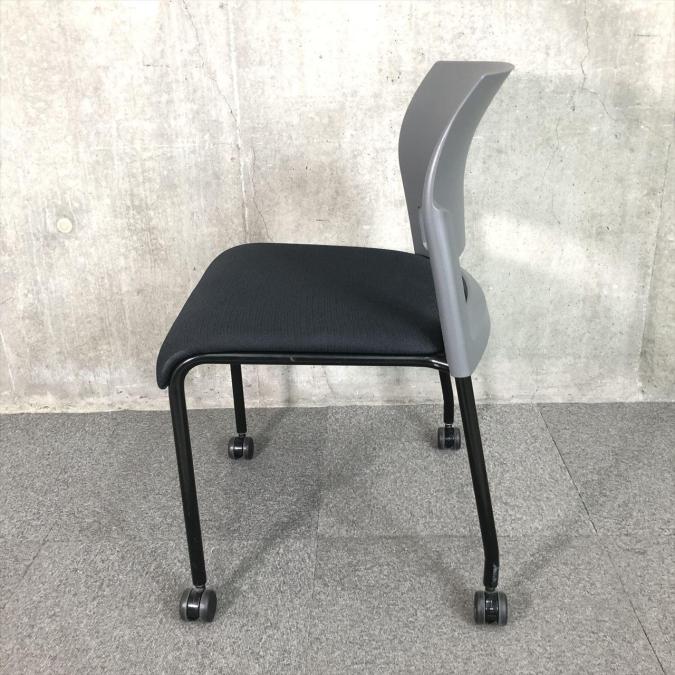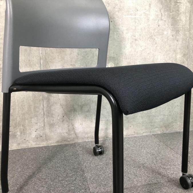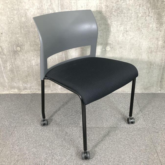 【ブラックカラー・キャスター付きのミーティングチェア!】■スチールケース Move490 (ムーブ490) スタッキングチェア ミーティングチェア 肘無し ■キャスター付 ■座面:ブラック × 背もたれ:グレー- 品川・三田店