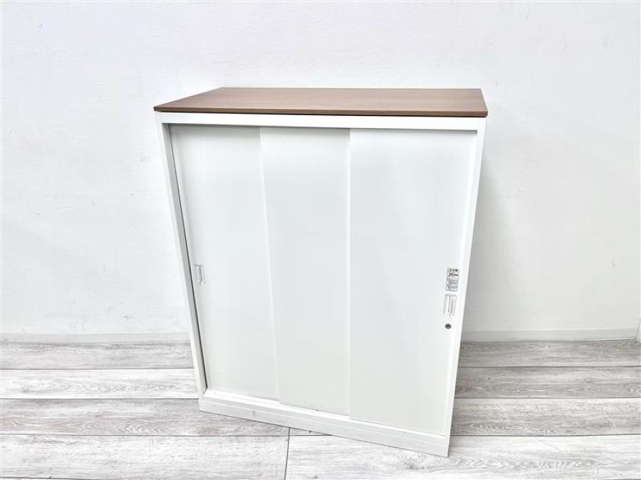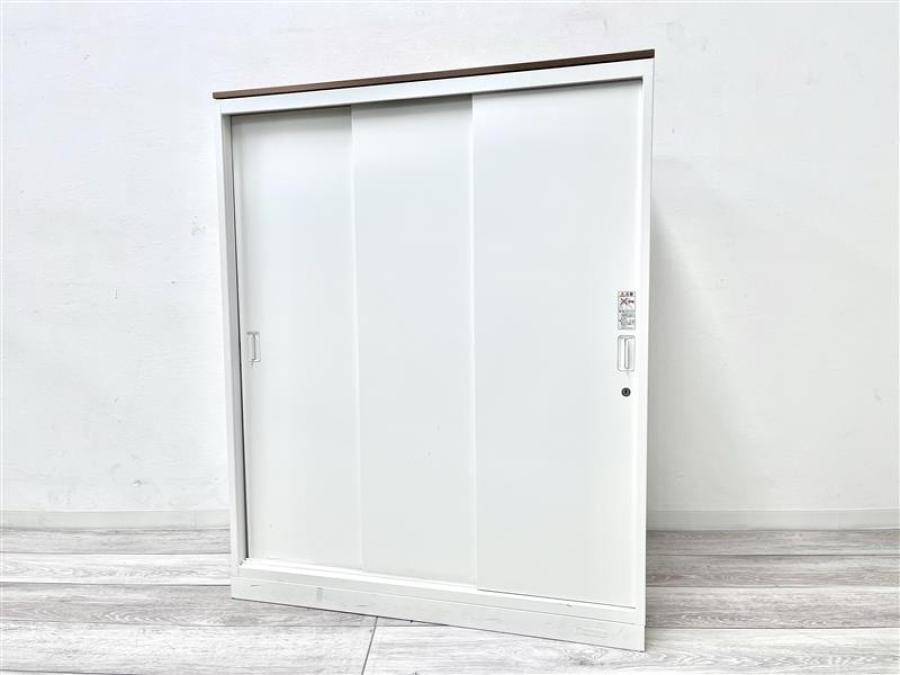 オカムラ製 人気レクトラインシリーズ ホワイト シリンダー W800xD450XH1050 3枚引戸 ※ベースなし 3枚引き違い書庫!!