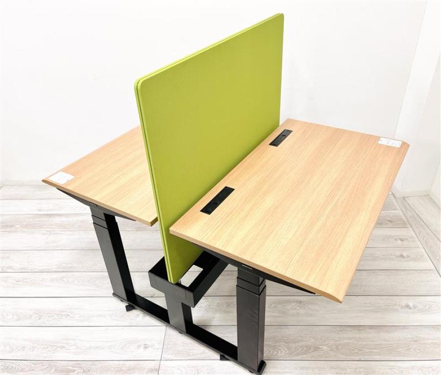 【在庫入替セール品】【定価約100万円】【気分や作業内容に合わせて天板の高さ調整可能!】■オカムラ/スイフト/4人1セットの上下昇降デスク■ナチュラル天板 W2300/D1240/H700~1250 ■残り1点のみ 4人用 ※写真は2人分になりますが実際の商品はもう2人分もセットでの販売になります。- 在庫数