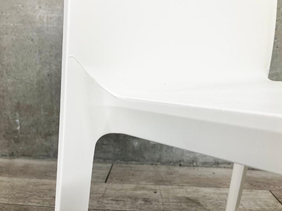 - かなり強い濃い黄ばみ・変色が商品全体にある。(例、座面・背もたれ、脚部等にある。)