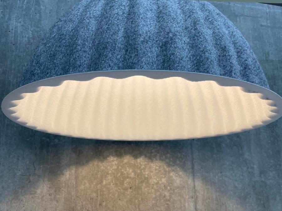 デザイナーが賑やかなレストランでウエイターの声を聴くことが困難だった時に、テーブルごとに小さな音響ドームを作ることができないかという発想からデザインされました。