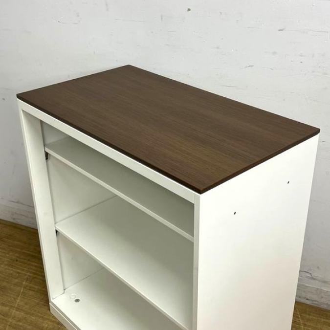 【オフィスの書類をスッキリ整理! 扉の無いタイプなので資料探しがラクラク!】■オカムラ(okamura)製 レクトライン(Rectline)シリーズ オープン書庫 ローキャビネット ■色:ホワイト ※扉外し商品のため外し跡がございます。