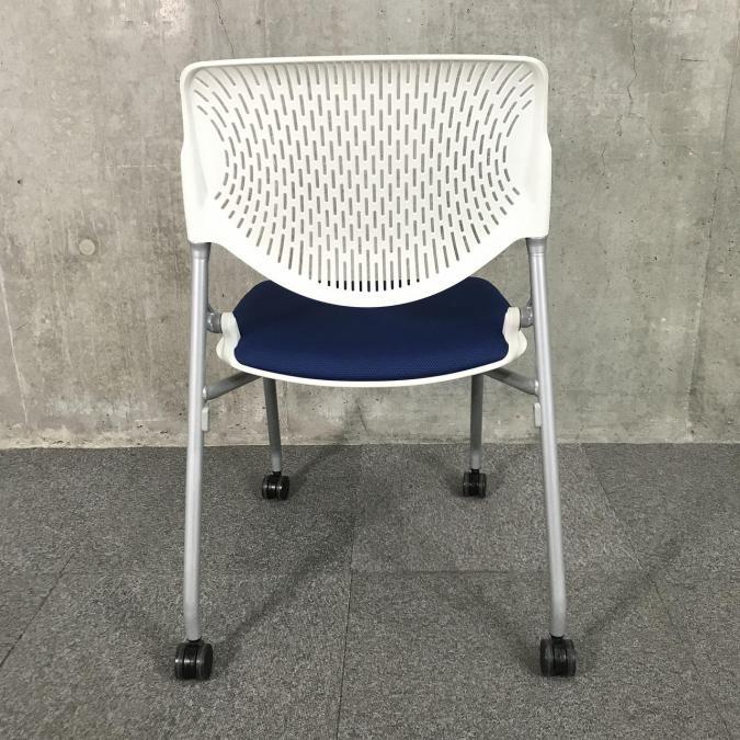 人気/希少/オススメ オカムラ(okamura) ルナ(Runa) ネスティングチェア 座面ブルー×背面ホワイト 背面ヌード 背面樹脂メッシュ キャスター付- 千葉店
