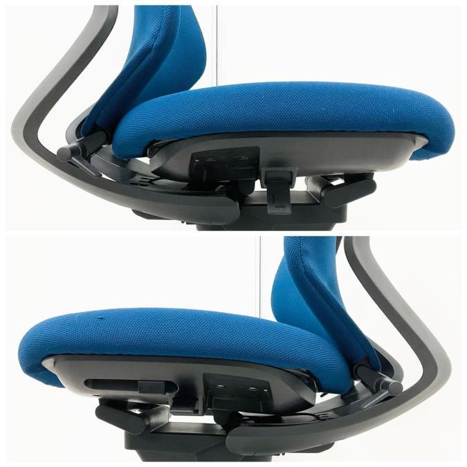 - 座面の高さは上下に90㎜、奥行は前後に50㎜調節可能。さらに骨盤を支えるポスチャーシート採用で着座時の前滑りを防ぎます。