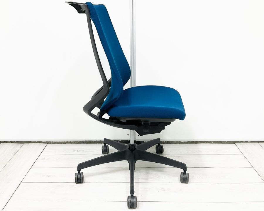 【在庫入替セール】コクヨ デュオラ 肘無しモデル クッションタイプ ブルー×ブラックフレームの定番のカラーリング コートハンガー付き ※背もたれに破れ有り【T9】