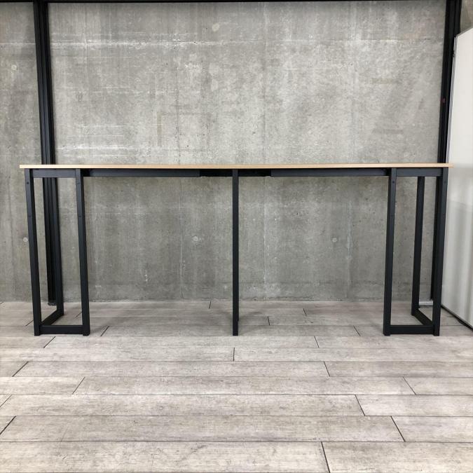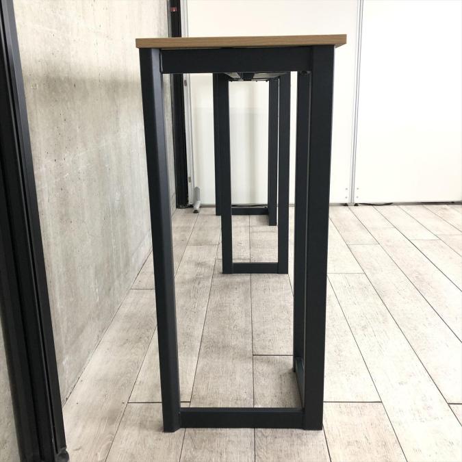 【定価約7万円】【珍しいオシャレなカフェ風カウンターテーブル!シンプルなデザインで使いやすい!】■コクヨ製 カウンターテーブル ■木目ダーク天板×ブラック脚 ■2枚天板- 仙台店