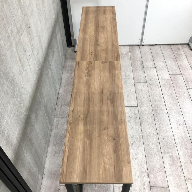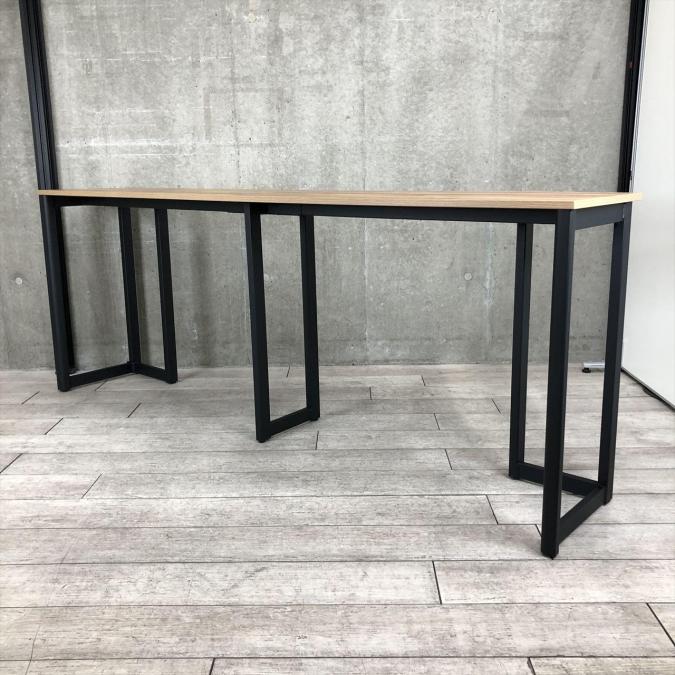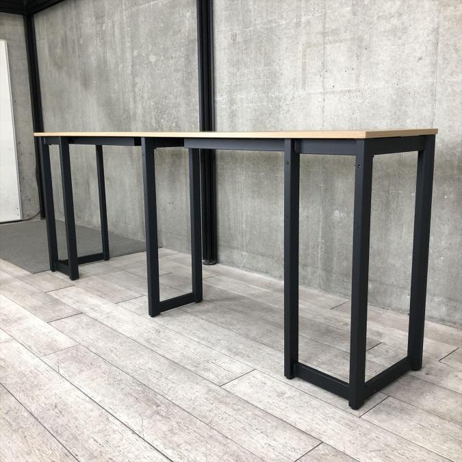 【定価約7万円】【珍しいオシャレなカフェ風カウンターテーブル!シンプルなデザインで使いやすい!】■コクヨ製 カウンターテーブル ■木目ダーク天板×ブラック脚 ■2枚天板- 仙台店