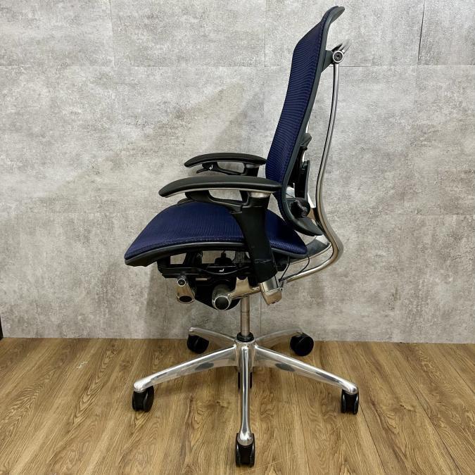 【オカムラ製の最高級チェアが残り1脚限りです!!】オフィスバスターズ 東大阪店 オカムラ製 コンテッサ シリーズ ダークブルー アジャストアーム※可動肘 背/座面メッシュ ランバー 世界で認められた革新的タスクチェア!人間工学に基づいた快適な座り心地を実現! 肘付きハイバックチェア!! 中古 外部倉庫品