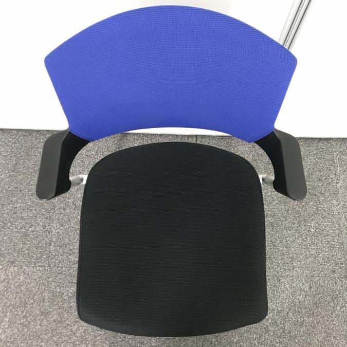【シンプルスマートなスタッキングチェア!分厚いクッションで長時間でも快適な座り心地!】■コクヨ(KOKUYO)製 プロッティ 肘付スタッキングチェア ■固定肘 ■キャスター付 ■背面ブルー×座面ブラック在庫がある店舗一覧