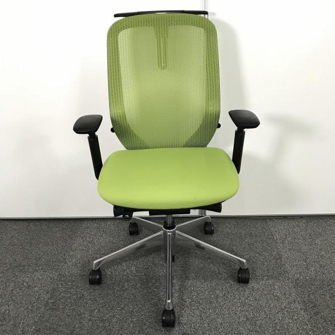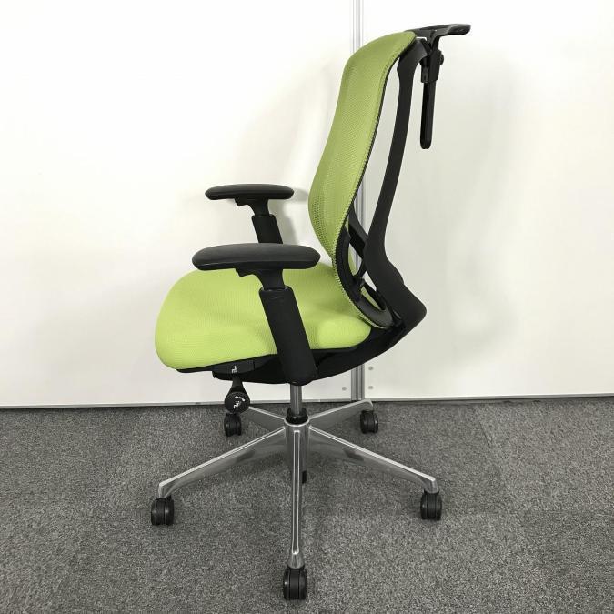 【前傾チルト機能付き!オカムラ製品で最も人気を集める高機能メッシュチェア!】■オカムラ(okamura)製 シルフィ(Sylphy)チェア ハイバック 肘付き ■可動肘 ■ライムグリーン × ホワイトシェル【状態良好品!】