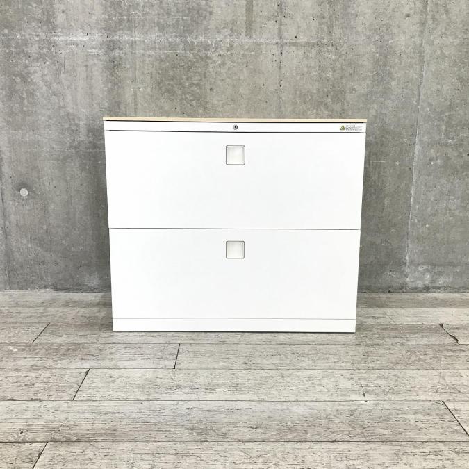 【定価約10万円】【腰高で丁度いいサイズ感!窓下スペースにも設置しやすい!】■オカムラ(okamura) レクトラインシリーズ 2段ラテラル ローキャビネット ■H780㎜ ■シリンダー錠 ■本体:ホワイト/天板:ナチュラル- 新大阪店