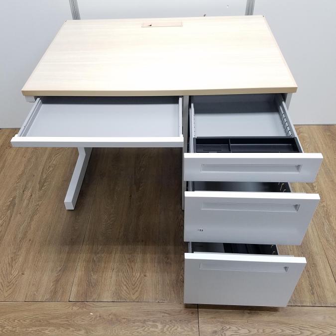 【商品入替のため、残り1台限り】ウチダ製 スカエナシリーズ 木目ナチュラル天板 本体ホワイト シリンダー Sタイプ※配線中央 W1000のコンパクトサイズ 木目ナチュラル天板がオシャレ! W1000片袖机!!サーキュラーバリューCO2削減量の算出について