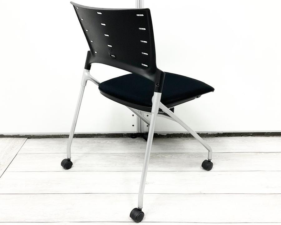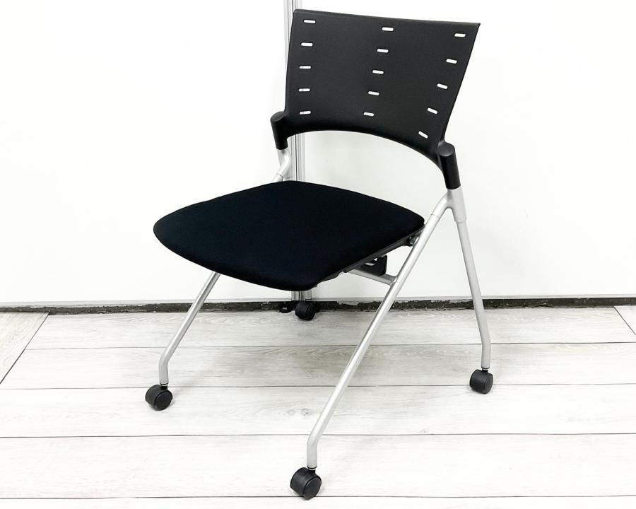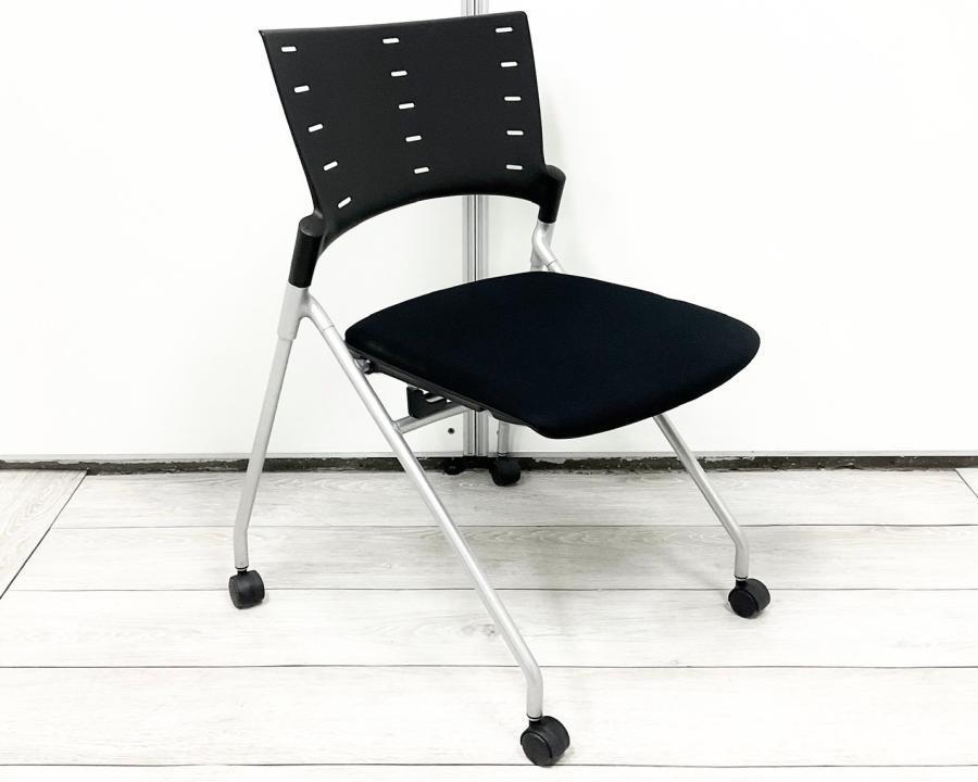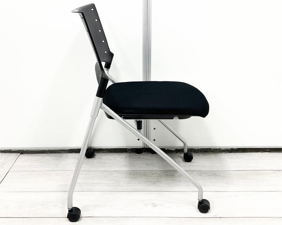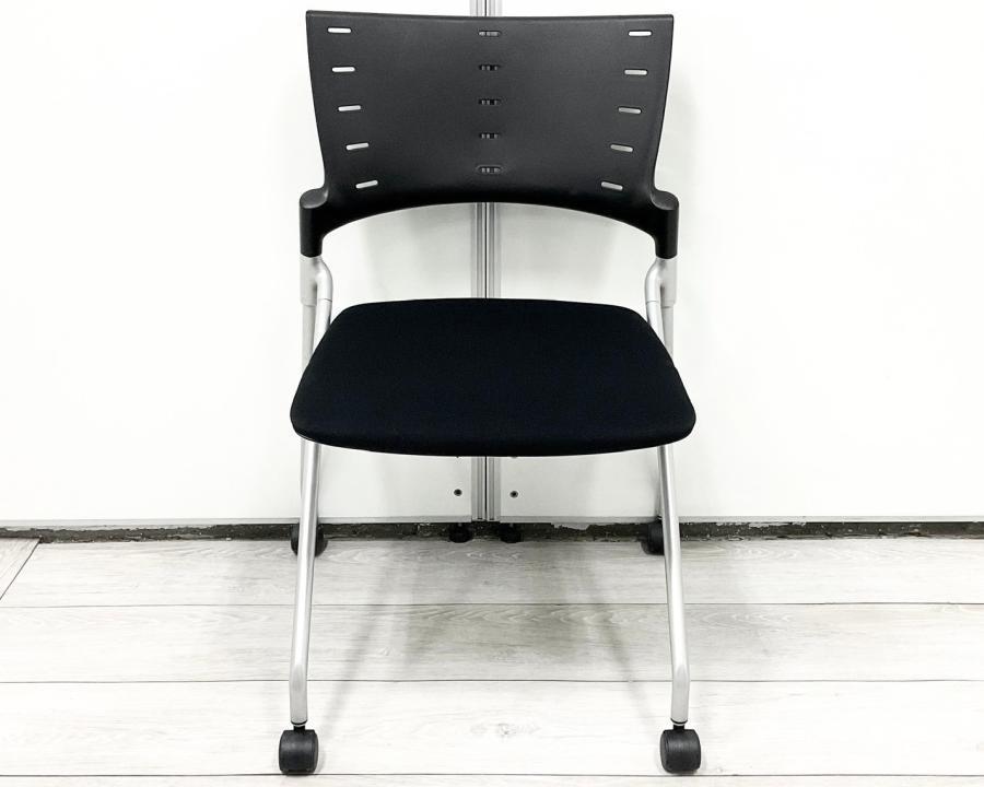 【関西倉庫在庫品】【平行に重ねて省スペース!使い勝手抜群のミーティングチェア!】■イトーキ マノスシリーズ ネスティングチェア 座ブラック 背ホワイト キャスター付【ITOKI Manos】【W】