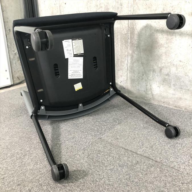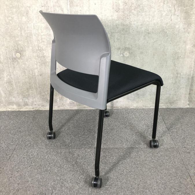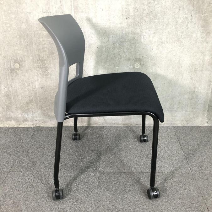 【ブラックカラー・キャスター付きのミーティングチェア!】■スチールケース Move490 (ムーブ490) スタッキングチェア ミーティングチェア 肘無し ■キャスター付 ■座面:ブラック × 背もたれ:グレー【AD】- 在庫数