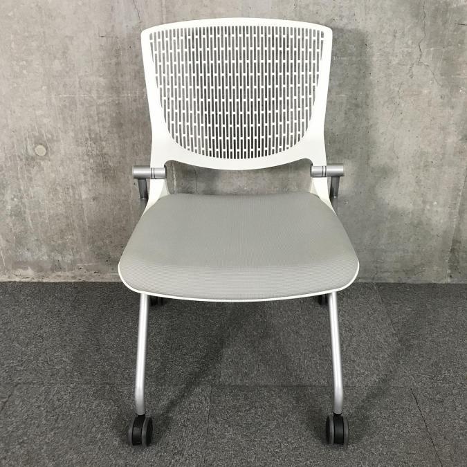 【スリット構造のシェルがワーカーを軽やかに受け止める!】■オカムラ(okamura)製 グラータ (Grata)シリーズ 肘付 ミーティングチェア ネスティングチェア 会議 来客 休憩 キャスター付 グレー 福岡 九州最大級《オフィスバスターズ福岡博多店は、福岡を拠点として、日本全国へ中古オフィス用品・オフィス家具を提供しております》