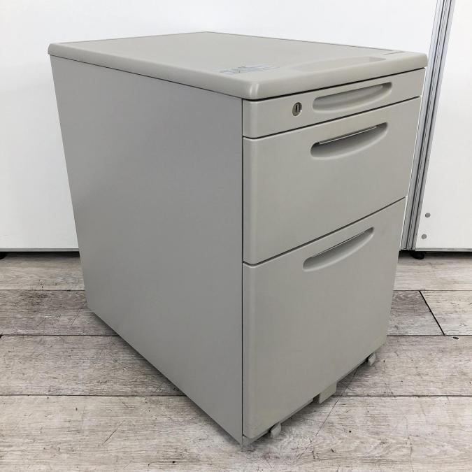 【天板の把手とキャスターで移動がらくらく!シンプルでスタンダードな3段ワゴン!】■オカムラ(okamura)製 SDシリーズ 3段ワゴン デスクインワゴン H610mm ■シリンダー錠 ■ニューグレー